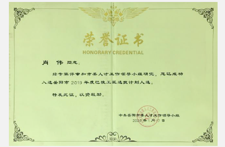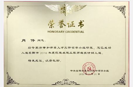 公司总经理助理、重点项目负责人,全国石油和化工行业优秀科技工作者、中国橡胶制品行业十佳优秀技术人才、新兴际华集团劳动模范、岳阳市巴陵卓越工程师、岳阳市巴陵工匠,公司技术骨干、年青技术人员领军人。