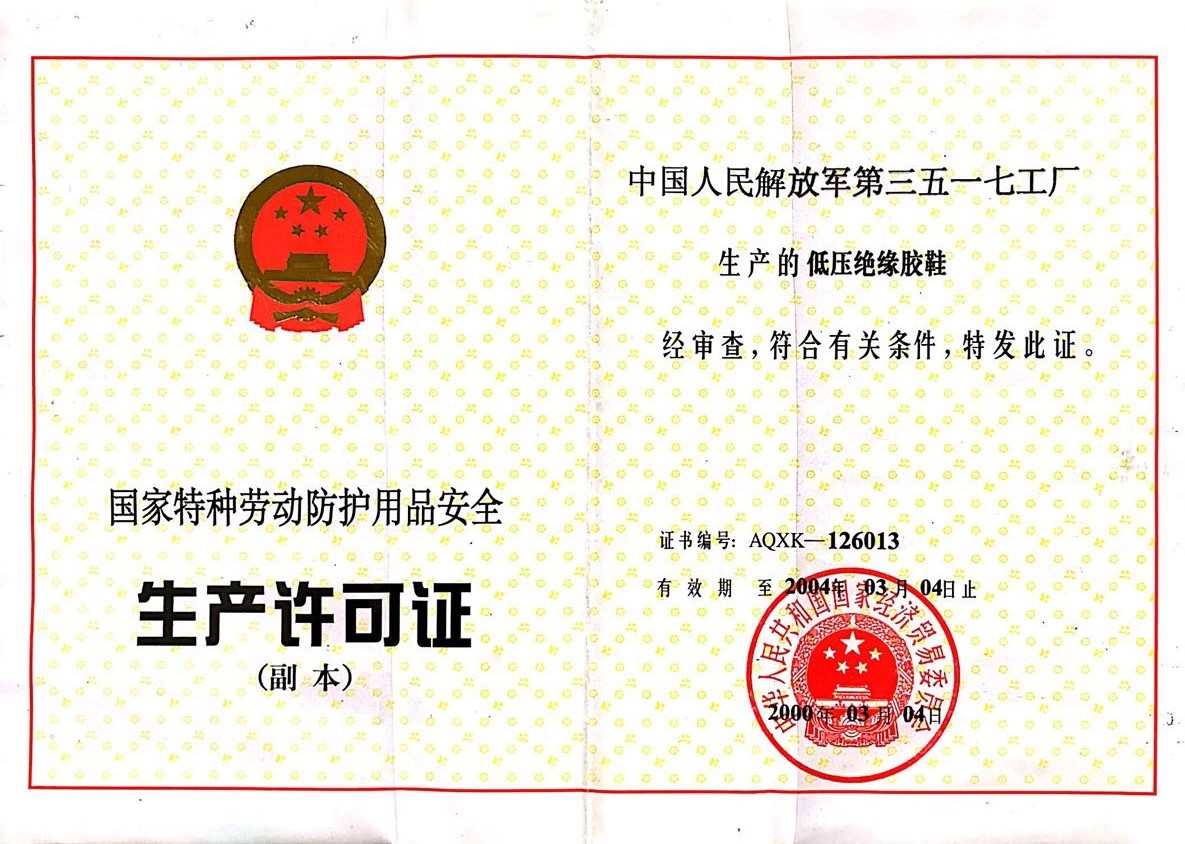 2000年 低压绝缘胶鞋 生产许可证