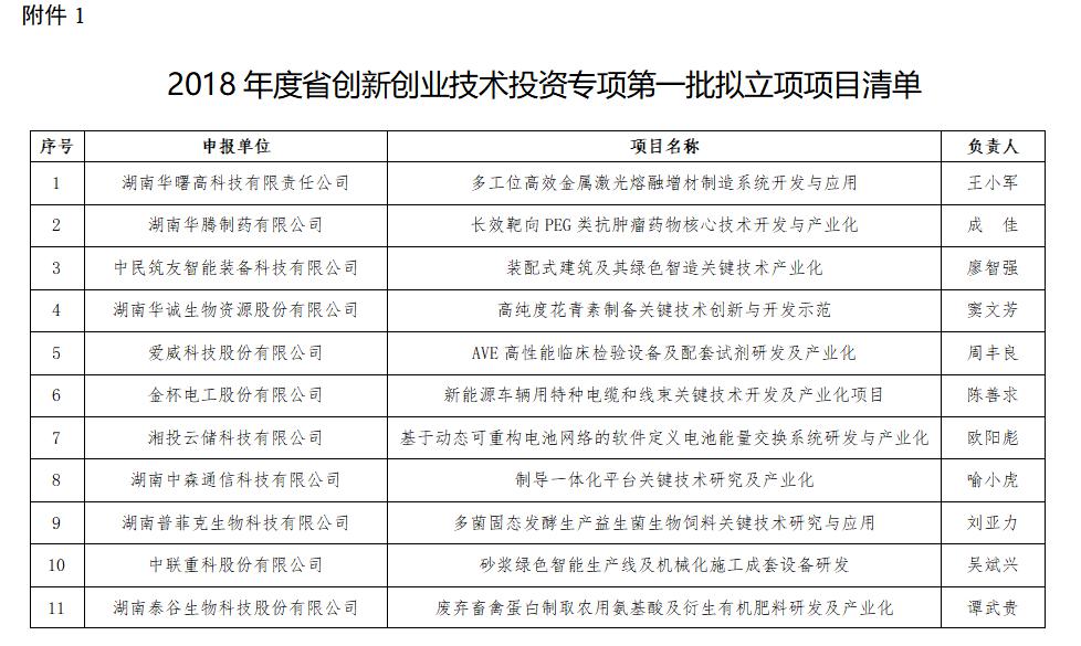 2018年 省科技厅创新创业投资项目 (一)