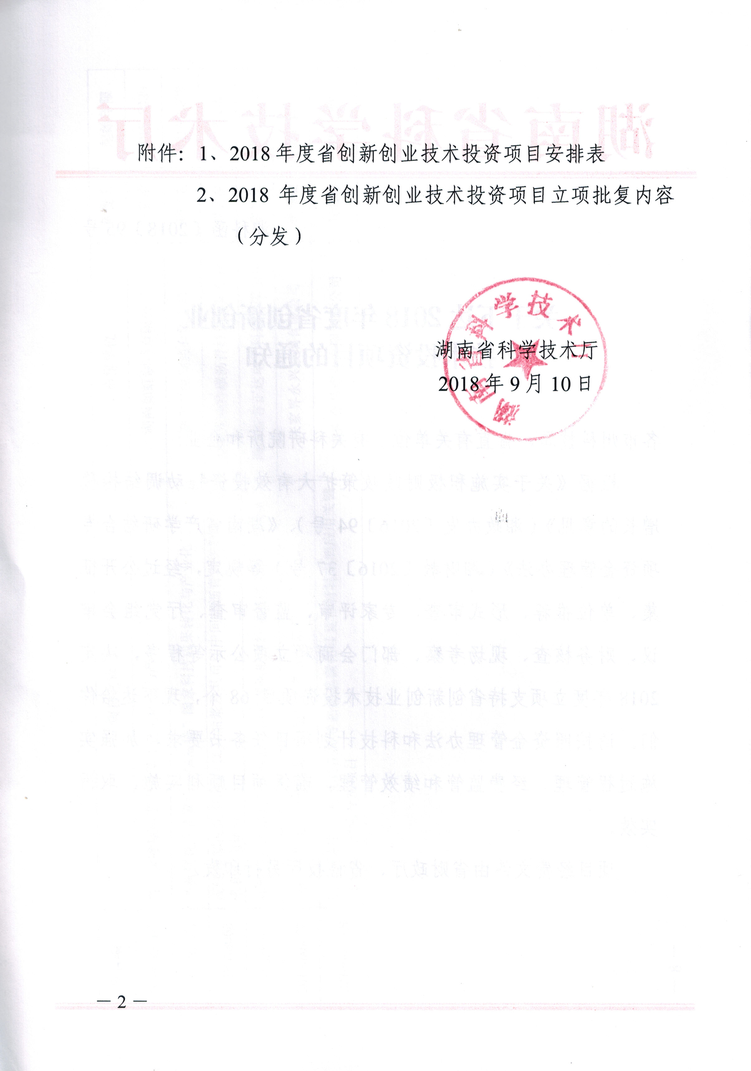 2018年 省科技厅创新创业投资项目 (二)
