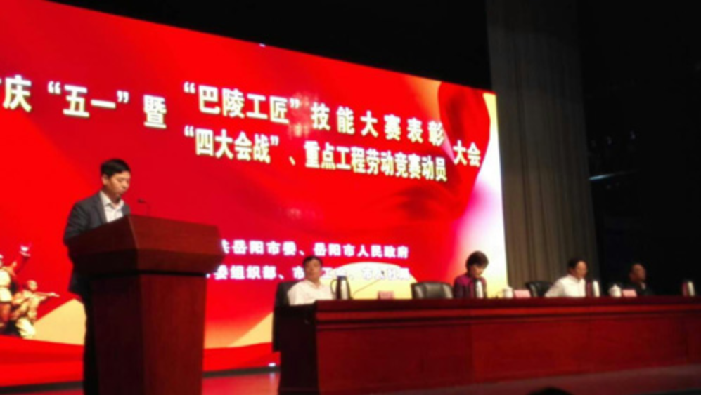 “五一”前夕,岳阳市委市政府隆重召开“庆五一巴陵工匠技能大赛表彰暨四大会战劳动竞赛动员大会”。际华3517公司受到表彰并作表态发言。