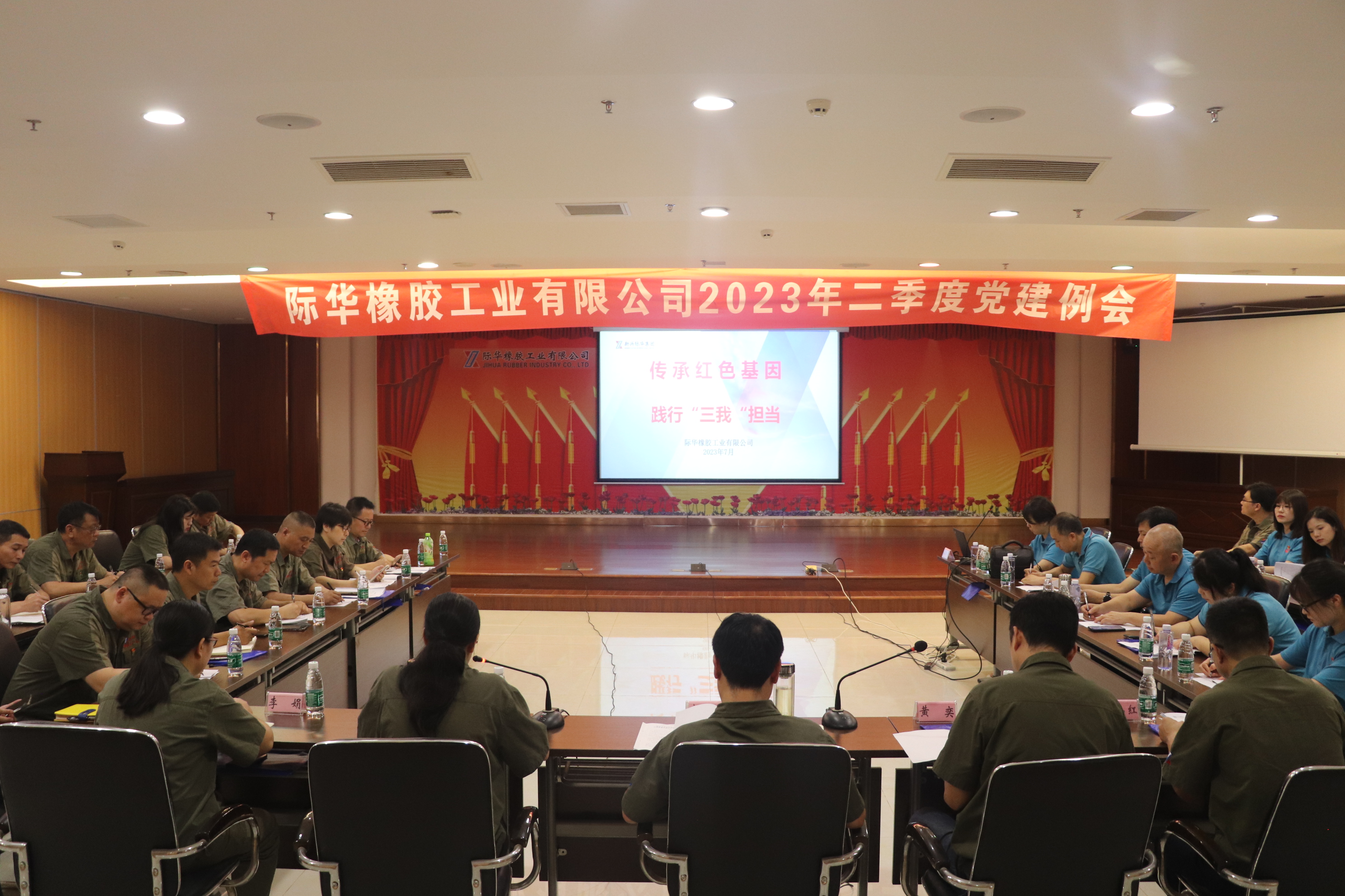 7月24日上午,际华橡胶工业有限公司组织召开第二季度党建工作例会。公司党委书记、董事长容三友、党委委员、各分子公司代表、党(总)支部书记及党群部门人员参加会议。会议由党委副书记、纪委书记黄庆英主持。