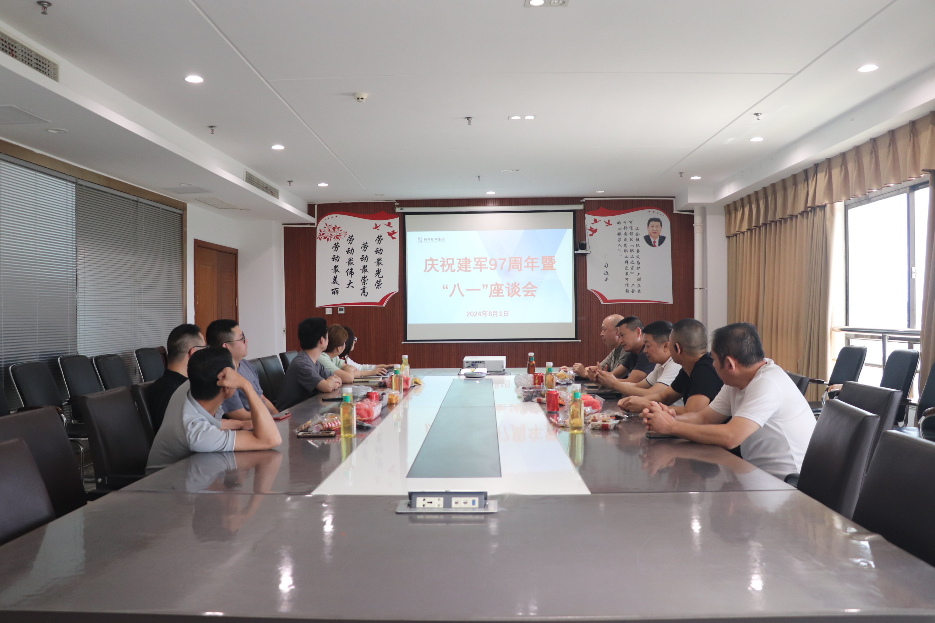 为庆祝中国人民解放军建军97周年,8月1日下午,际华橡胶公司召开庆祝建军97周年暨“八一”座谈会。在工会会议室来自公司的部分转复退军人代表欢聚一堂,此次座谈会由党群人力部承办。