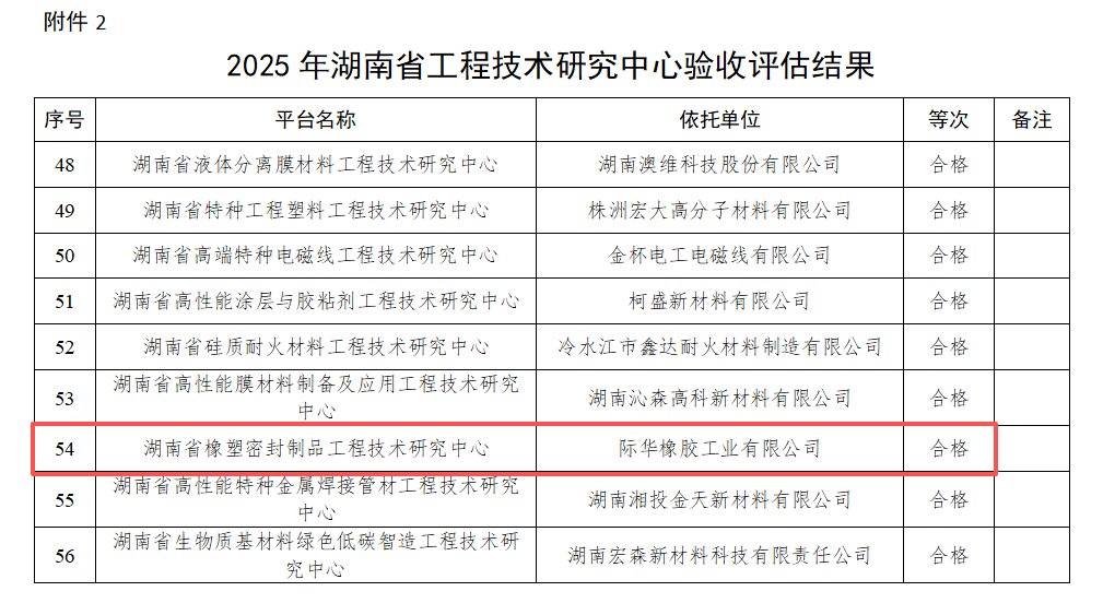 橡胶公司湖南省橡塑密封制品工程技术研究中心平台于2022年5月获批组建,2025年9月初成功通过湖南省科技厅组织的工程技术研究平台验收答辩。