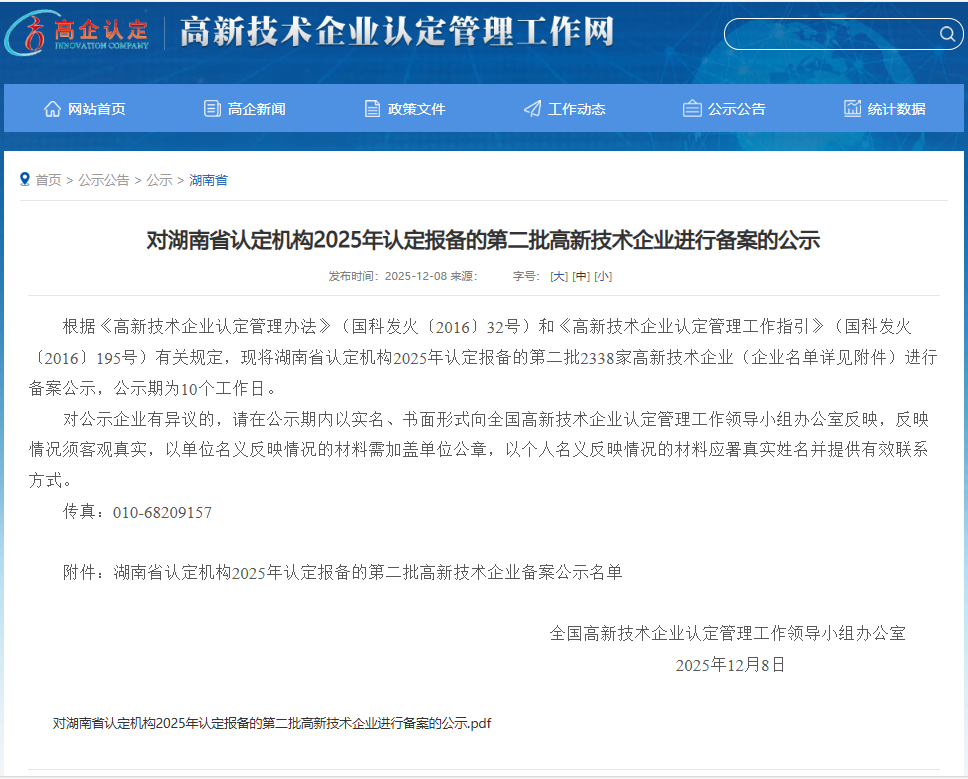 近日,由全国高新技术企业认定管理工作领导小组办公示的“湖南省2025年认定的第二批高新技术企业”中,际华橡胶工业有限公司正式通过了国家高新技术企业的严格评审与认定,再次荣获“高新技术企业”荣誉称号。